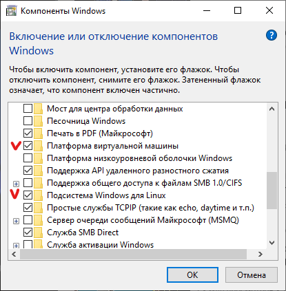 # Windows Subsystem for Linux WSL позволяет запускать, разрабатывать и отлаживать Linux программы на Windows. Более того обеспечивается удобная прозрачность между файловыми системами и возможность запускать программы друг-друга. Существует две реализации WSL: - WSL1 - транслятор API Linux <-> Windows - WSL2 - виртуальная машина с полноценным ядром Linux. Мы будем пользоваться WSL2. По скорости работы WSL2 почти не уступает нативной OS Linux. Более подробные отличия можно посмотреть в интеренете. Находим в поиске: Включение или отключение компонентов Windows Включаем галочки: - Подсистема Windows для Linux - Платформа виртуальной машины